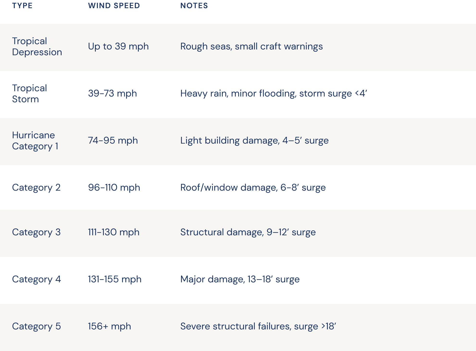 Tropical Storm Classifications